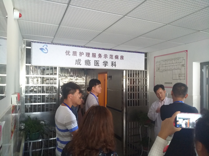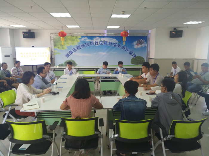 考察团一行实地参观了湖南省精神障碍社区康复服务孵化基地及第九医院自愿戒毒中心。市第九医院副院长王民主向考察团详细介绍了基本情况及长沙社区精神康复工作情况;心翼精神康复所主管罗月红对会所模式进行了介绍,并就如何与康复对象建立信任关系,如何赋予其希望、重视其个人优势、帮助其树立个人责任感,如何让康复患者主动参与更好地实现其个人价值等问题进行了深入的交流;成瘾医学科主任刘伟介绍了市第九医院自愿戒毒中心的发展历程、病房目前的收治情况等。
