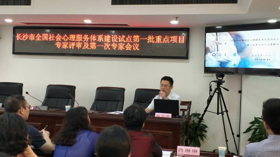 2019年6月21日,长沙市全国社会心理服务体系建设试点第一批重点项目专家评审及第一次专家会议在长沙市卫生健康委会议室举行,市卫健委、市政法委相关负责人应邀出席。
