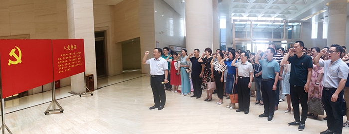 2019年6月26日,在党史陈列馆大厅,市第三社会福利院的党员同志们,在鲜红的党旗下,高举右手,重温入党誓词,再次坚定地许下了为党的事业奋斗终生的承诺,表达了对党忠诚的决心,神圣庄严的仪式感激发了全体党员爱党、敬业、奉献的情怀。