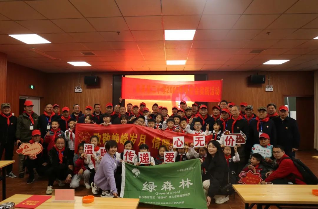 比赛结束后,长沙市泰禹二小2005中队的同学们来到了我院优抚科开展“学雷锋,关爱退役老兵”慰问活动。少先队员们为功臣们送上了精彩的节目表演和诚挚的祝福,并为他们戴上红领巾,一起向功臣们敬队礼,让那一抹抹代表传承的红色基因接续到祖国未来的花朵身上。