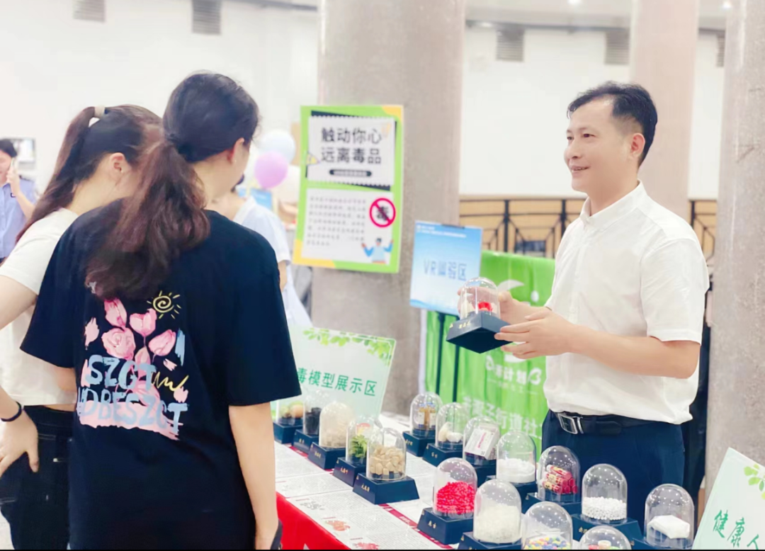 活动现场还通过禁毒知识展板、发放禁毒宣传册、毒品仿真模型展览等多种形式,让高校学生学习如何辨别新型毒品,尤其是与零食外形极其相似的新型毒品,提高同学们防毒、拒毒的能力,增强“远离毒品、珍爱生命”的自觉意识。