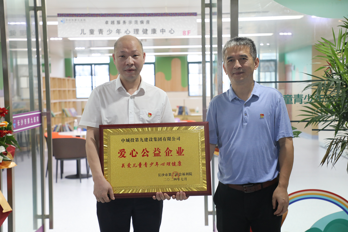 爱心企业中城投建设集团有限公司为该中心捐赠了集共享书吧、休闲吧、关爱儿童青少年友好文化建设等一体的“儿童青少年心灵氧吧”心理空间,为青少年儿童打造学习、治疗、康复的温馨空间。党委书记杨子江为爱心企业授牌。